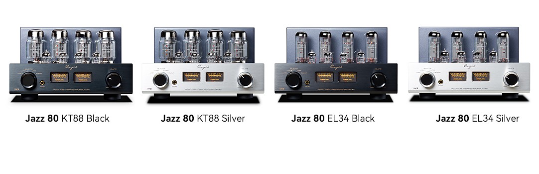 Cayin oferă patru opțiuni de Jazz 80. Puteți alege între versiunea Standard KT88 Tube sau versiunea EL34. În plus, puteți alege între versiunea Neagră sau Argintie.