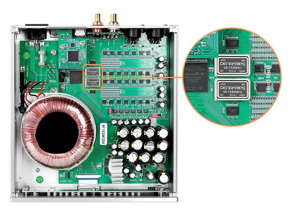 Echipat cu un oscilator cu zgomot de fază redus, ARES15th asigură o stabilitate excepțională a semnalului și un raport semnal-zgomot ultra-ridicat. Această inovație nu numai că îmbunătățește claritatea și detaliile sunetului, dar reduce și eficient zgomotul și distorsiunile din sistem, oferind un suport robust pentru experiența audio.