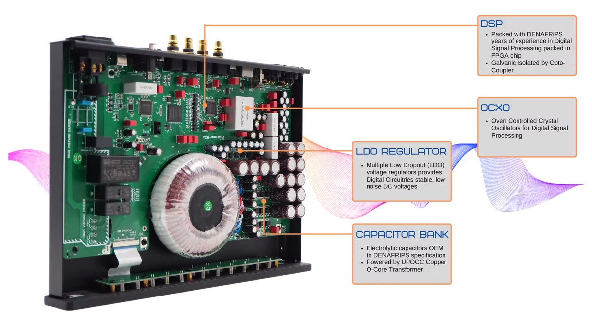 DDC-ul Denafrips utilizează un buffer FIFO pentru a stoca și gestiona semnalul digital de intrare. Acest proces de buffering este îmbunătățit și recronizat prin utilizarea unui ceas Femto intern de înaltă calitate, care asigură o sincronizare și o temporizare precise. În plus, DDC-ul încorporează izolare galvanică, protejând semnalul de interferențe electrice și menținând integritatea semnalului pe tot parcursul procesului de conversie.