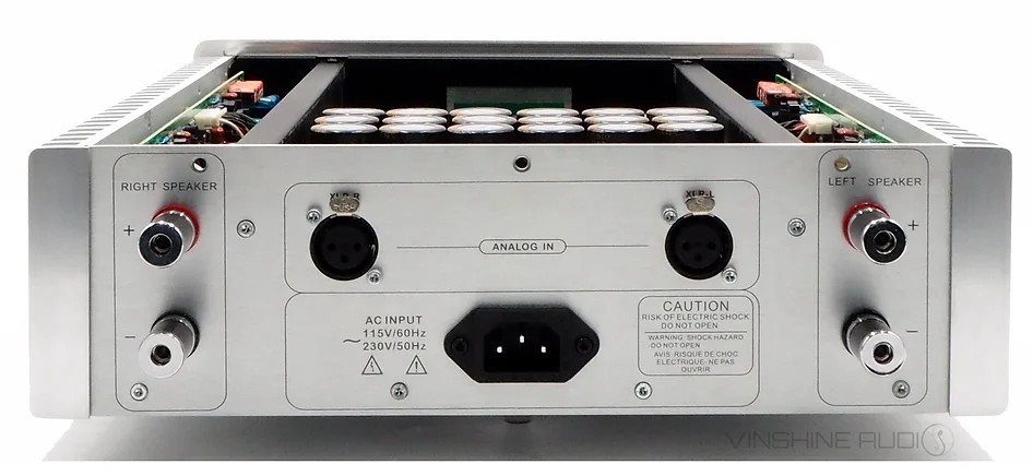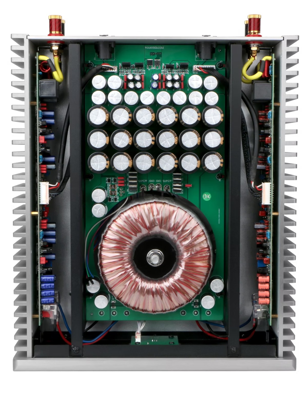 Intrările cu adevărat echilibrate sunt amplificate (atât semnalul +ve, cât și cel -ve față de masă) de circuitele modulare ale amplificatorului de putere. Fiecare canal este echipat cu 4 perechi de tranzistoare de ieșire.