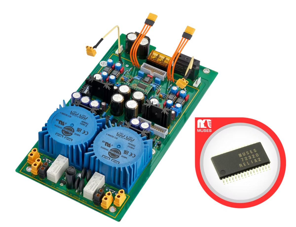 MUSES72320 este cunoscut pentru caracteristicile sale de zgomot redus și distorsiune redusă și utilizează un circuit cu rezistență în scară pentru reglarea precisă a volumului.
