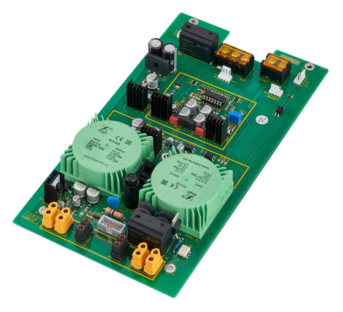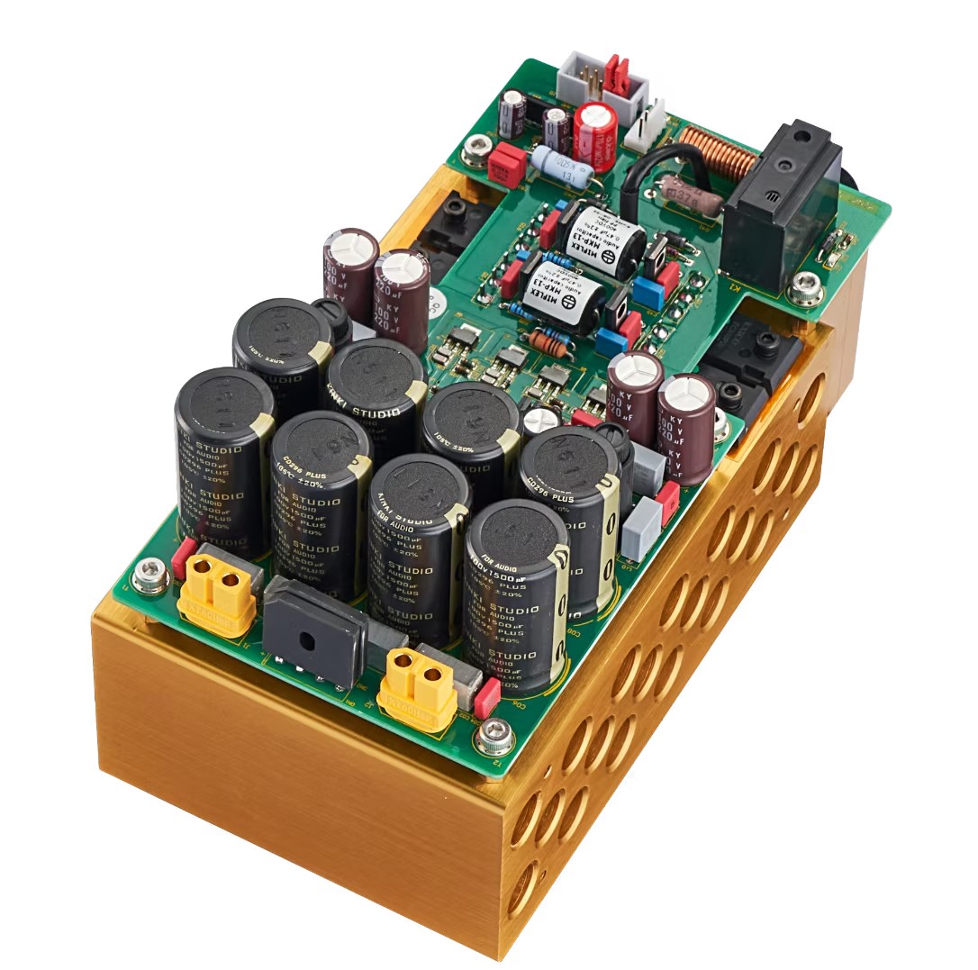 Circuitul de amplificare a puterii dispozitivului este montat direct pe un radiator anodizat cu aur, realizat la comandă, asigurând o disipare eficientă a căldurii. Etajul de putere dispune de două perechi de tranzistoare MOSFET EXICON de putere, care sunt acționate în clasa AB pentru a asigura performanțe optime.