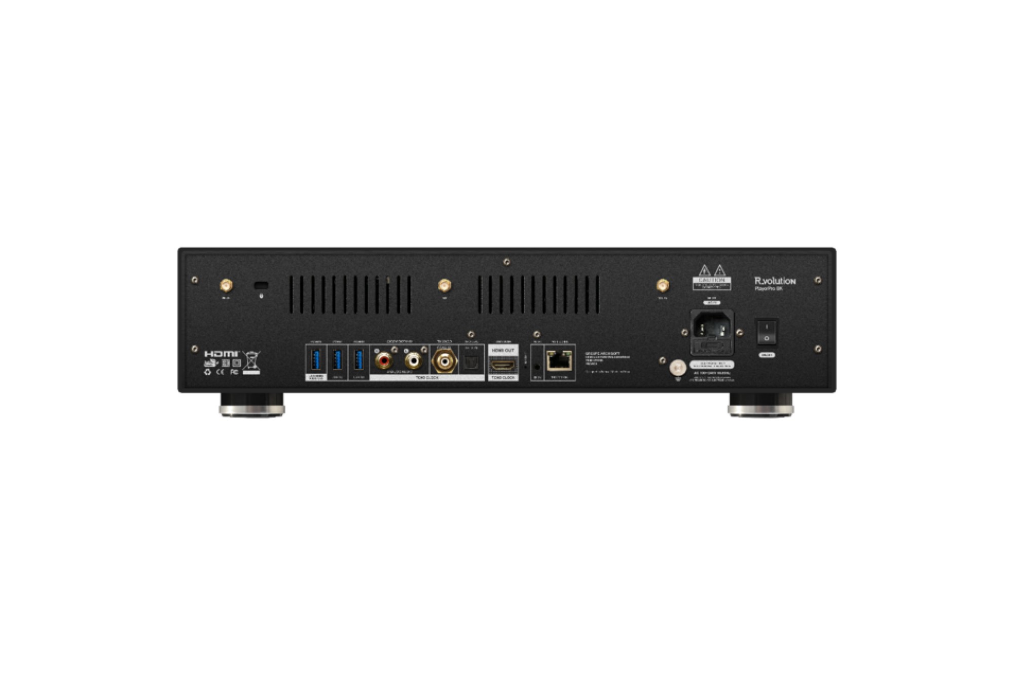 R_volution PlayerOne 8K vine cu un compartiment intern pentru hard disk capabil să găzduiască până la 32 TB de filme, emisiuni TV și fișiere de concerte. Oferă ieșire HDMI 2.1, compatibilitate cu cel mai recent codec AV1, până la rezoluție 8K în HDR și oferă o calitate uimitoare a imaginii și sunetului pentru a satisface nevoile celor mai exigenți pasionați de home theater.